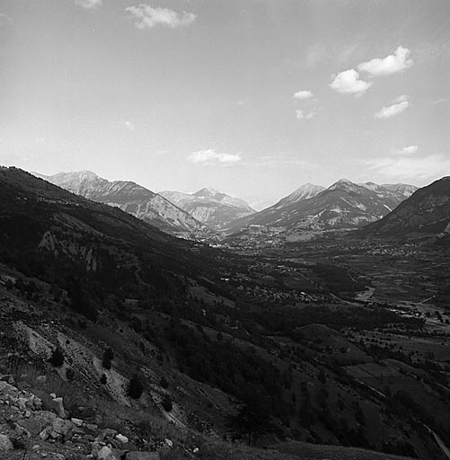 Vue prise du sud-ouest. La vallée de la Durance en aval de Briançon.Immatriculation