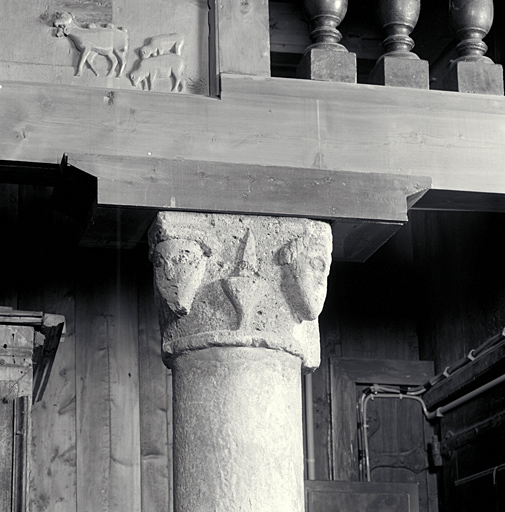 Colonne supportant la tribune. Le chapiteau, détail.Immatriculation