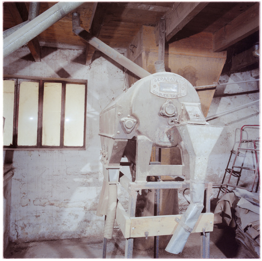 Rez-de-chaussée, ligne de tri pour graines rondes : plaque signalétique du séparateur à disques carter.Immatriculation