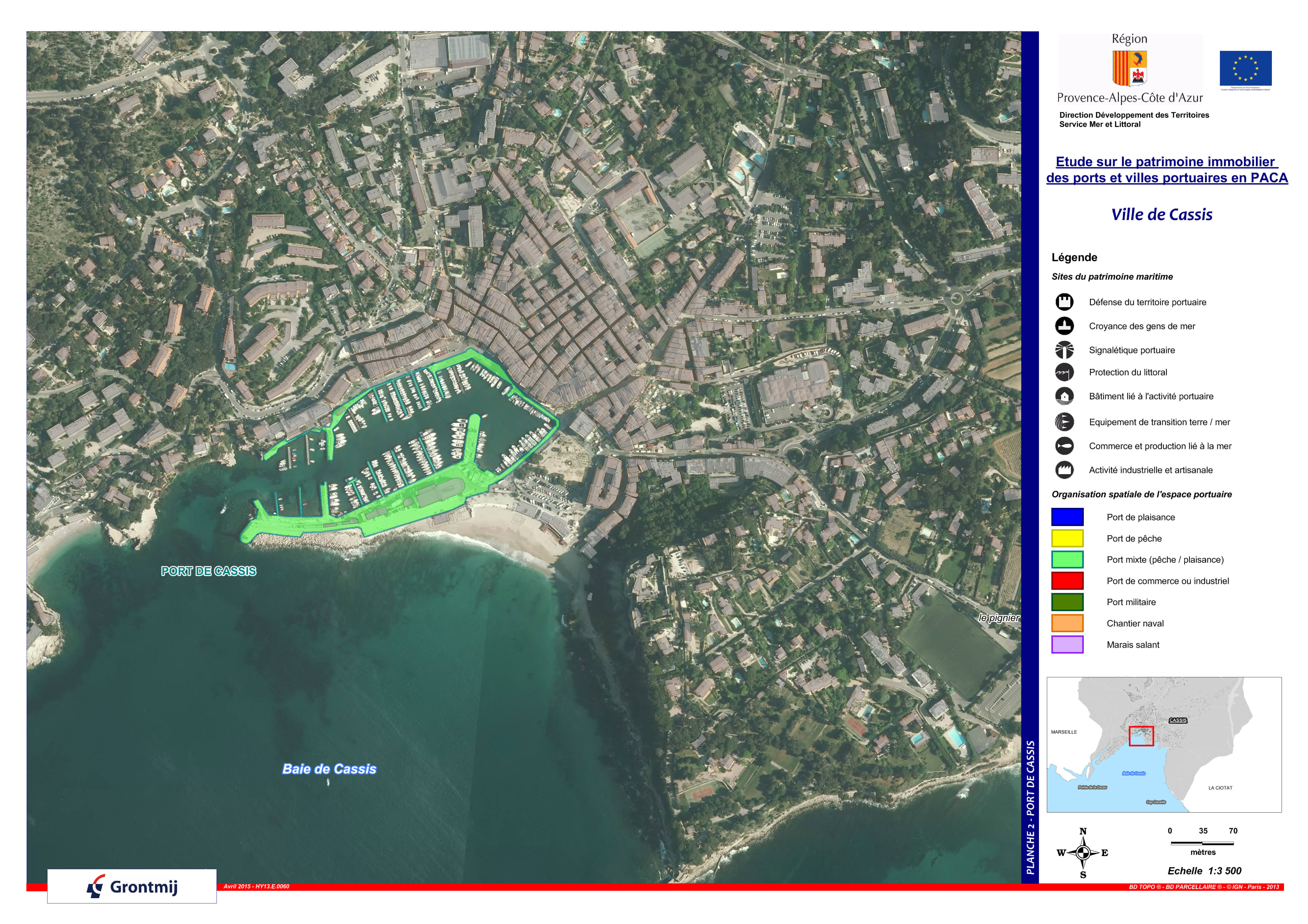 Carte de repérage des infrastructures portuaires de la commune de Cassis. Planche 2, le port de Cassis.Immatriculation