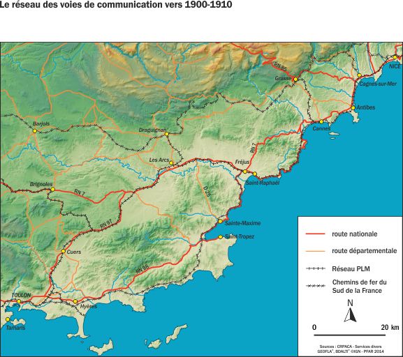 Le réseau des voies de communication vers 1900-1910.Immatriculation