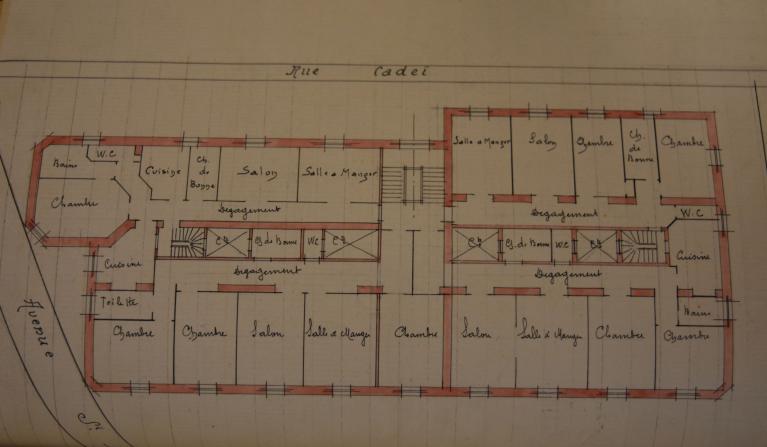 [Palais Valrose, Nice, zoom sur le plan d'un étage courant].Immatriculation