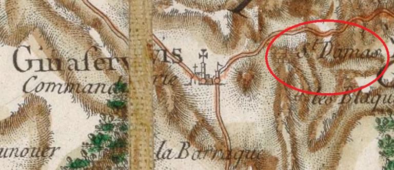 Carte de France dite carte de Cassini, 3e quart 18e siècle, chapelle Saint-Damase [St Damas].Immatriculation