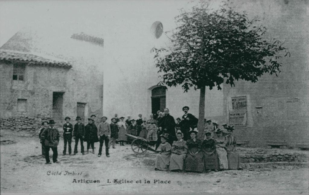 Artigues L'Eglise et la Place. / Carte postale par Imbert photographe, premier quart du 20e siècle. Collection particulière : non coté.