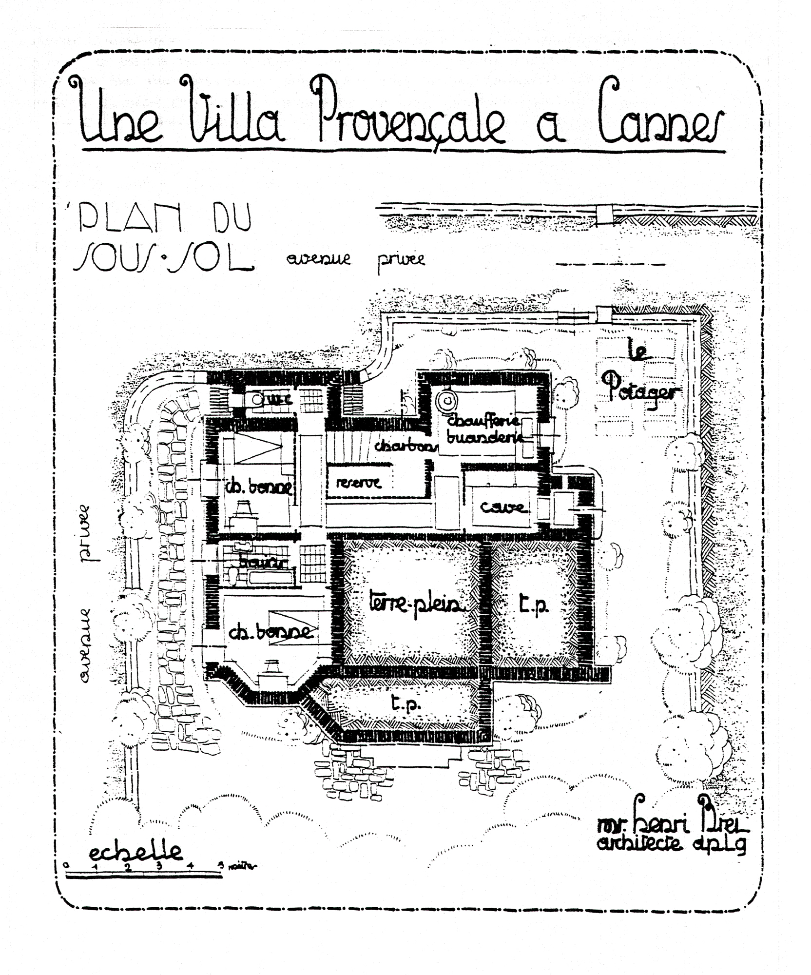 Une villa provençale à Cannes [villa Bagatelle]. Plan du sous-sol, [1931].Immatriculation