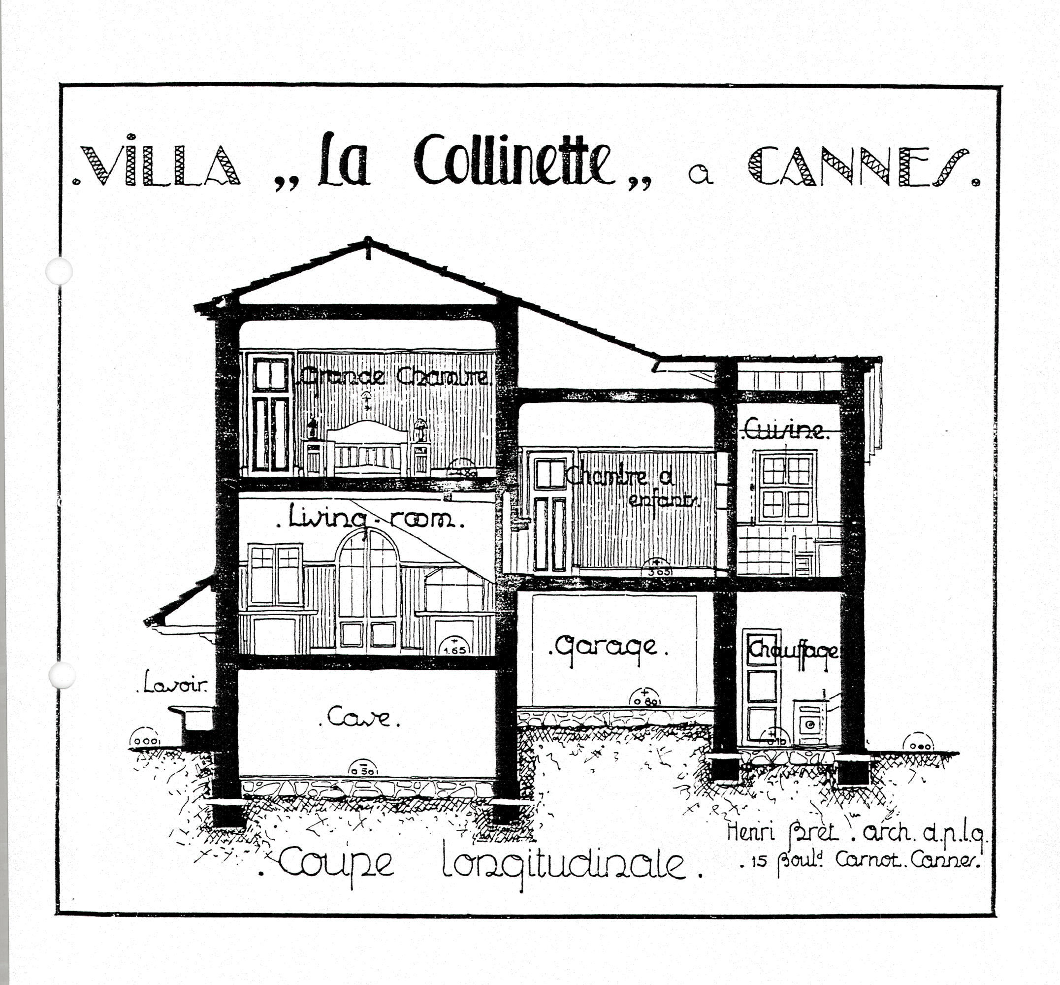 Villa La Collinette à Cannes. Coupe longitudinale, 1929.Immatriculation